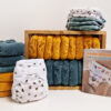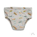 Fordi træningsbukserne ligner almindelige underbukser, giver det barnet en positiv stimulans: Jeg er godt på vej og må allerede have rigtige underbukser på. Bukserne er lavet af blød økologisk bomuld indvendigt og udvendigt, og i midten er der et lag vandtæt PUL. De absorberer mindre end en rigtig vaskbar ble, men nok til et uheld.